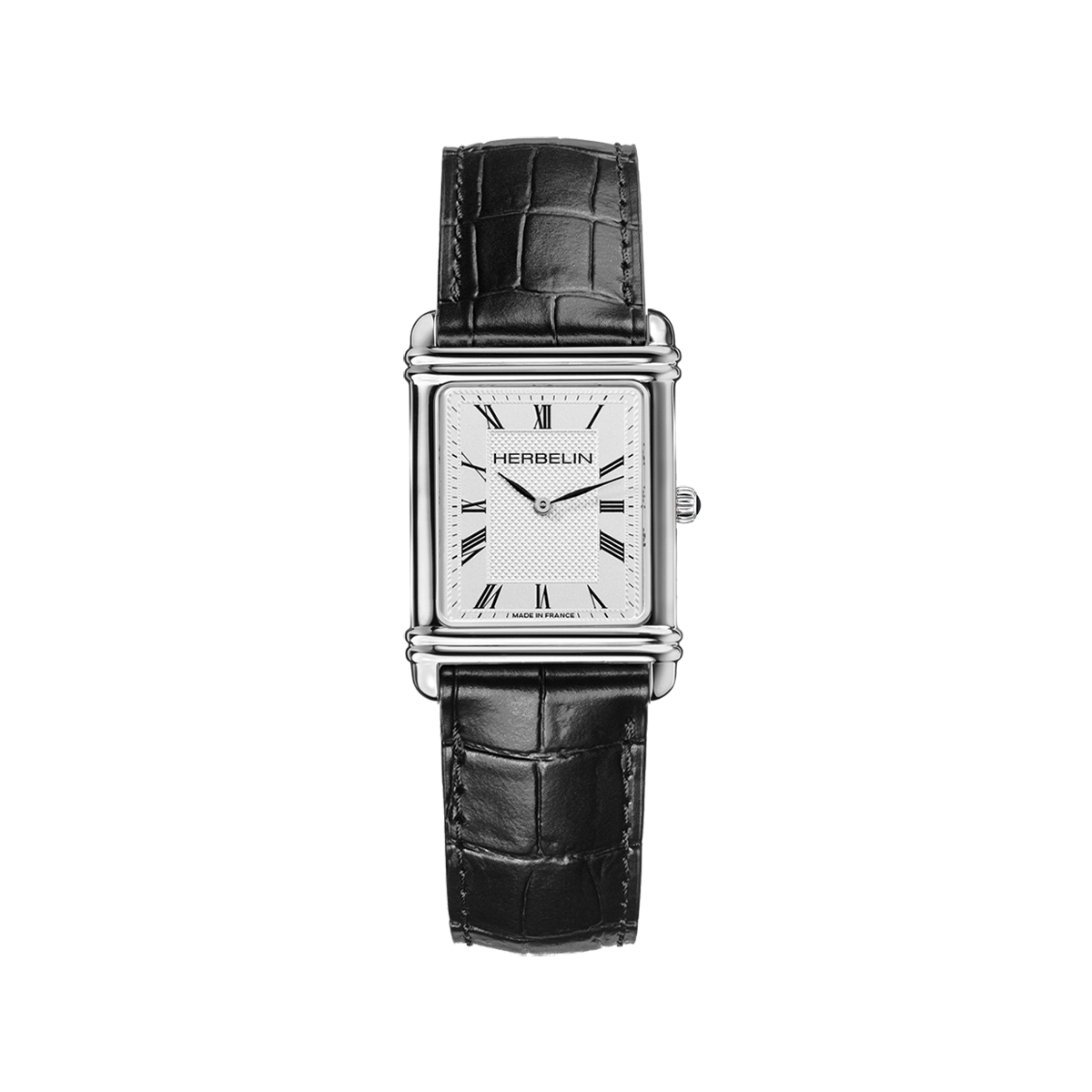 Le cadran, délicatement guilloché Clous de Paris en son centre, accueille des chiffres romains noirs qui soulignent ce caractère traditionnel et sa lisibilité parfaite. Protégée par un verre saphir, la montre masculine ART DÉCO Quartz Acier & Cuir Noir dissimule un mouvement suisse reconnu pour sa précision absolue. Le bracelet en cuir noir, travaillé façon crocodile et associé à une boucle traditionnelle en acier, apporte une finition noble et un confort au porté. Cette pièce horlogère s’adresse à l’homme moderne qui privilégie le raffinement et l’authenticité pour parfaire son allure au quotidien.