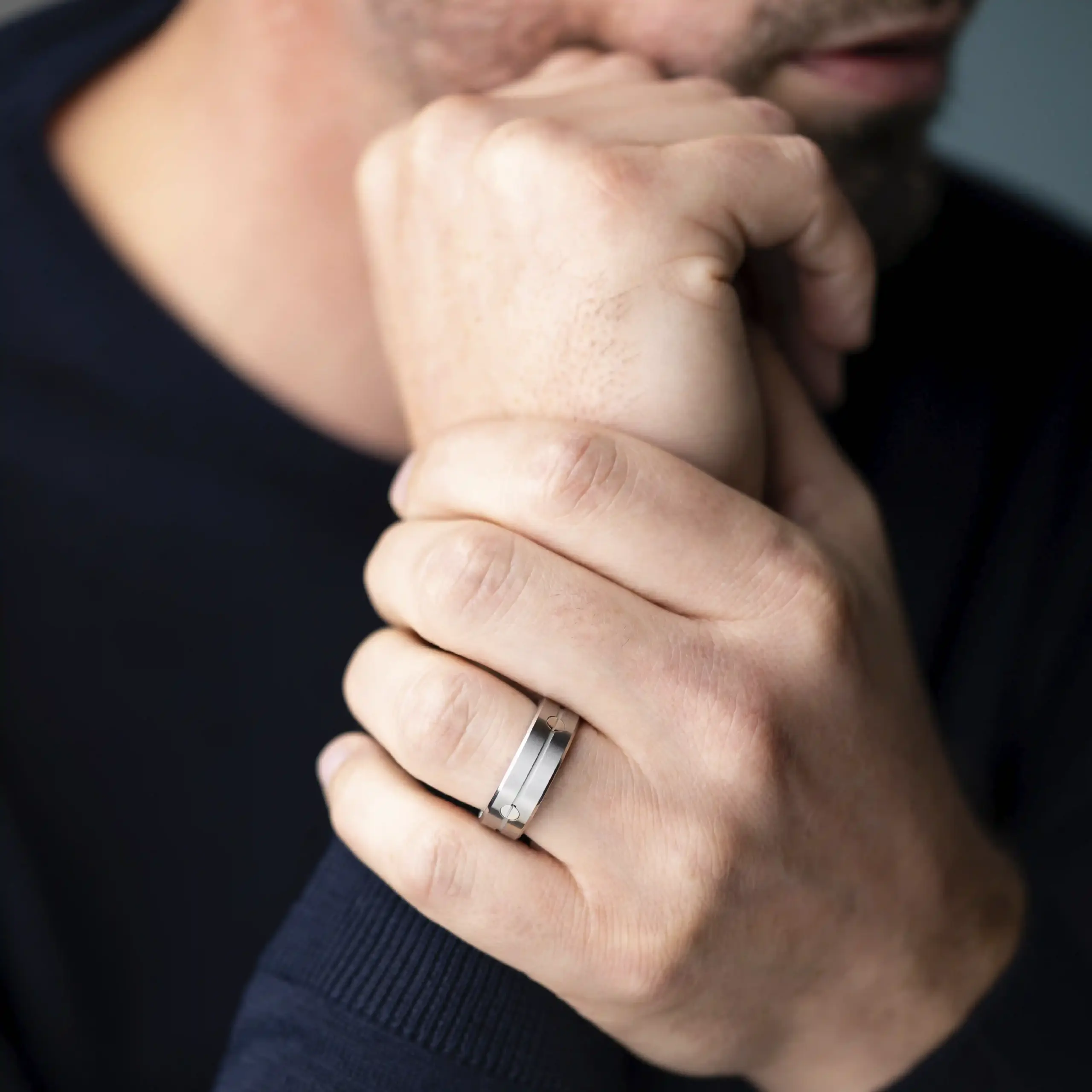 La Bague NEWPORT en acier brossé 316L reprend les codes emblématiques de la collection : lignes précises, bandeau central et vis signature. Son design épuré reflète le savoir-faire horloger de la Maison HERBELIN, entre rigueur et élégance. À la fois sobre et distinctive, cette bague incarne la modernité et la force masculine dans une version intemporelle. Un bijou de caractère, idéal pour accompagner un style affirmé au quotidien.