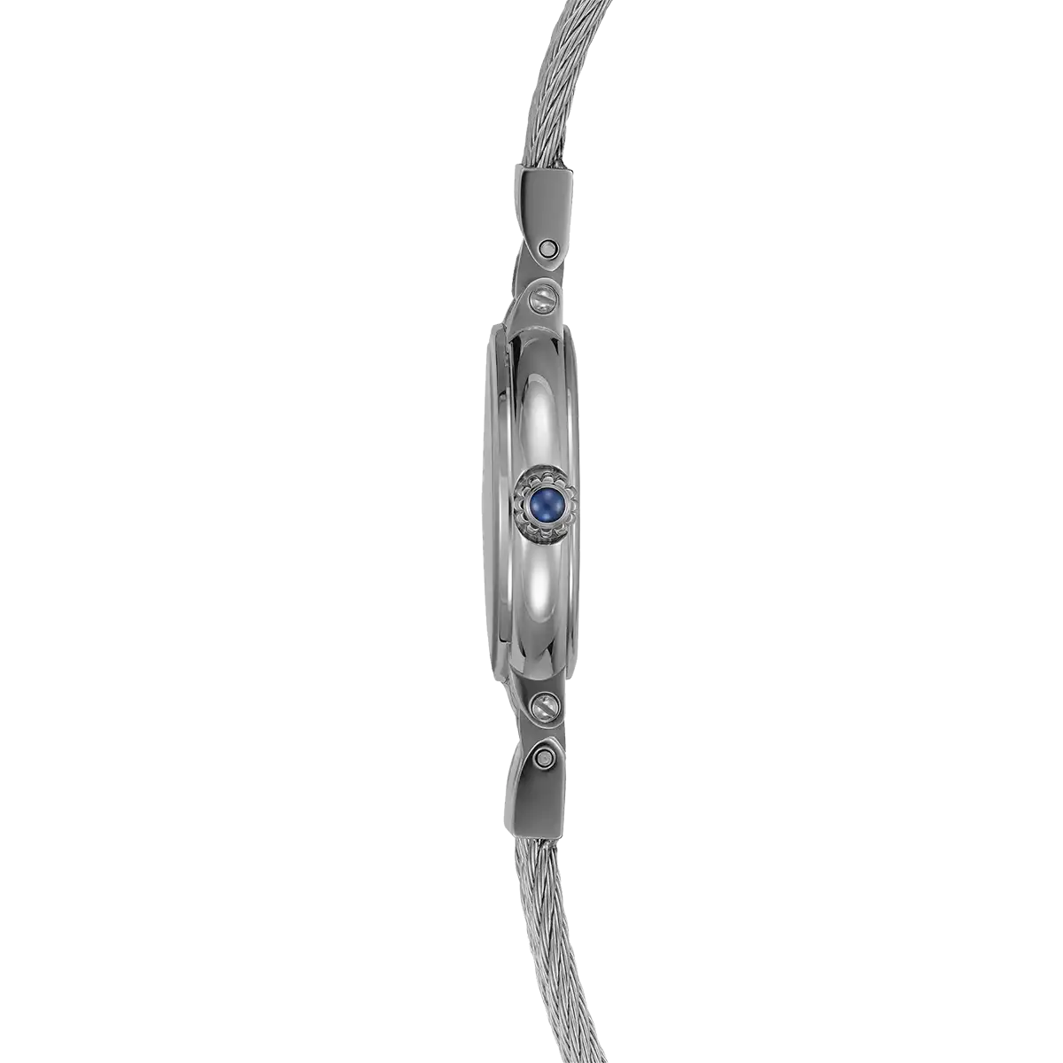Le cadran argent blanc guilloché révèle un jeu de textures subtil, captant la lumière avec élégance et apportant profondeur et relief à l’ensemble. Les index en chiffres romains et les aiguilles fines assurent une lecture fluide des heures et des minutes, dans un esprit à la fois classique et contemporain, protégé par un verre saphir résistant.