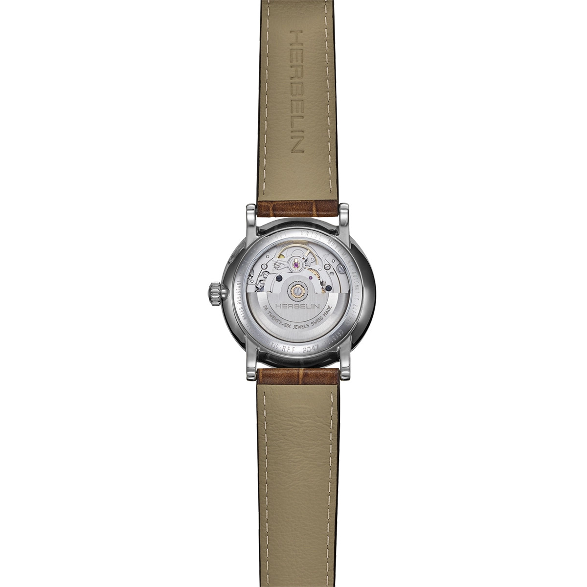 Protégée par un verre saphir résistant, cette Inspiration est étanche jusqu’à 30 mètres, répondant parfaitement aux exigences d’un usage quotidien. Sa couronne finement travaillée souligne le soin apporté aux détails, signature de la maison HERBELIN.