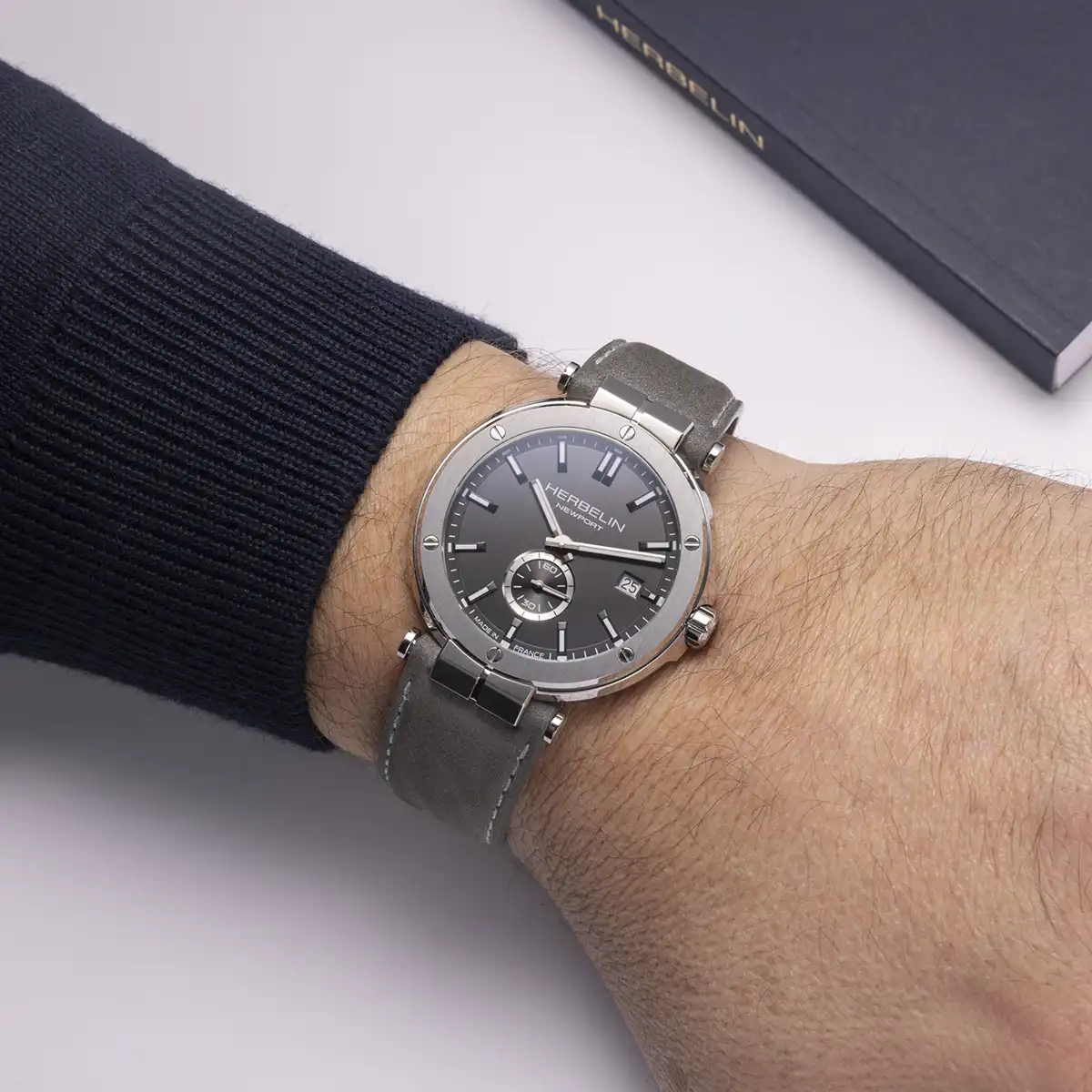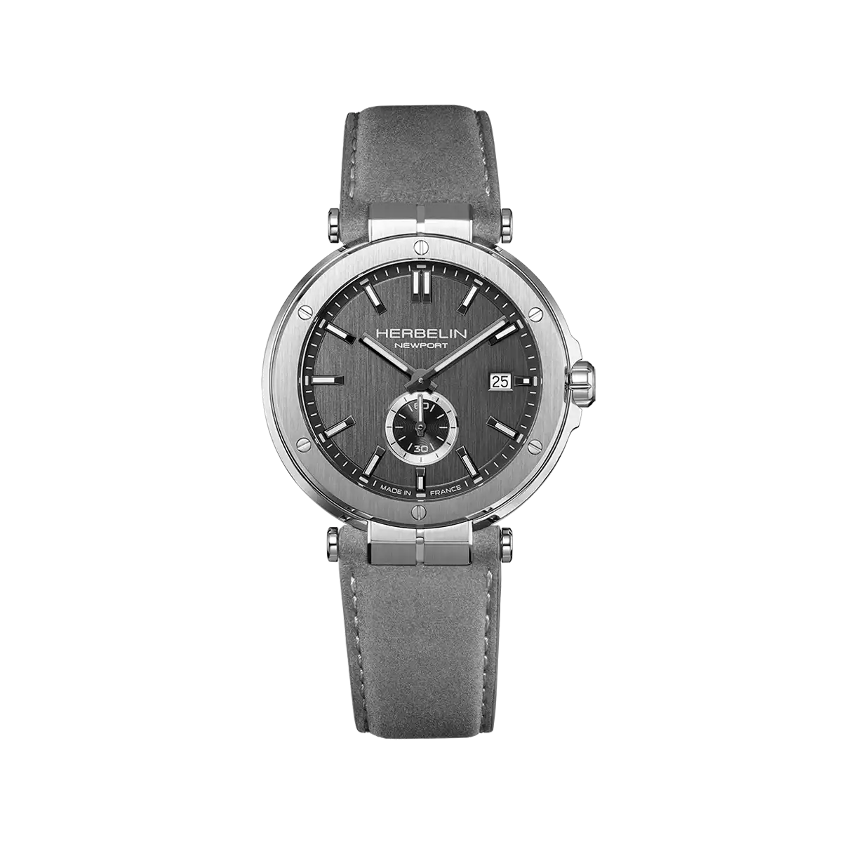 Alliant sobriété contemporaine et esprit marin, cette montre Newport incarne le savoir-faire horloger de HERBELIN à travers un design épuré et parfaitement équilibré. Son boîtier en acier inoxydable 316 L accueille un cadran gris brossé vertical, dont les reflets subtils apportent profondeur et modernité à l’ensemble.